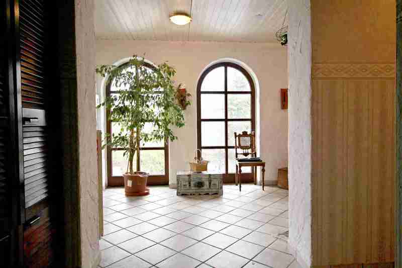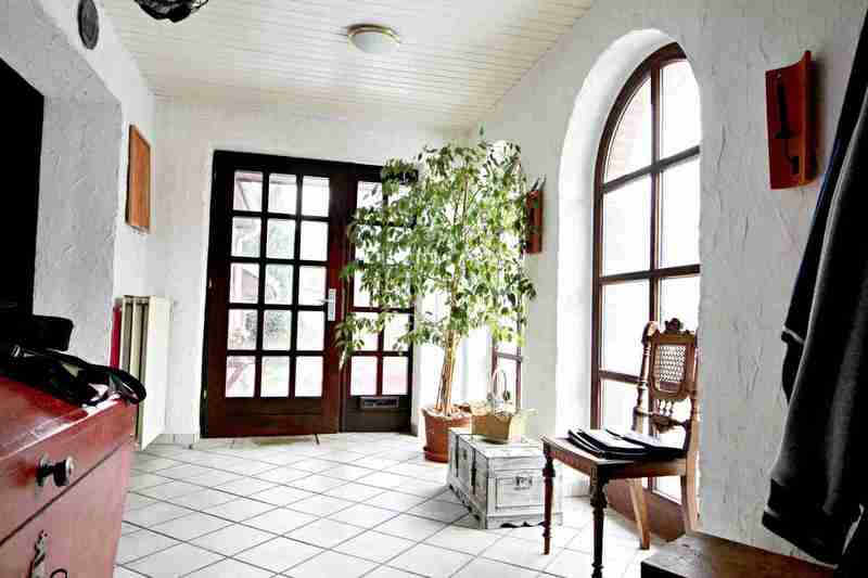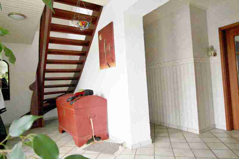 Über einen schönen überdachten Eingangsbereich gelangen Sie in den Windfang des Hauses. Von hier aus geleitet Sie eine schöne Holztreppe in das Dachgeschoss der Immobilie.