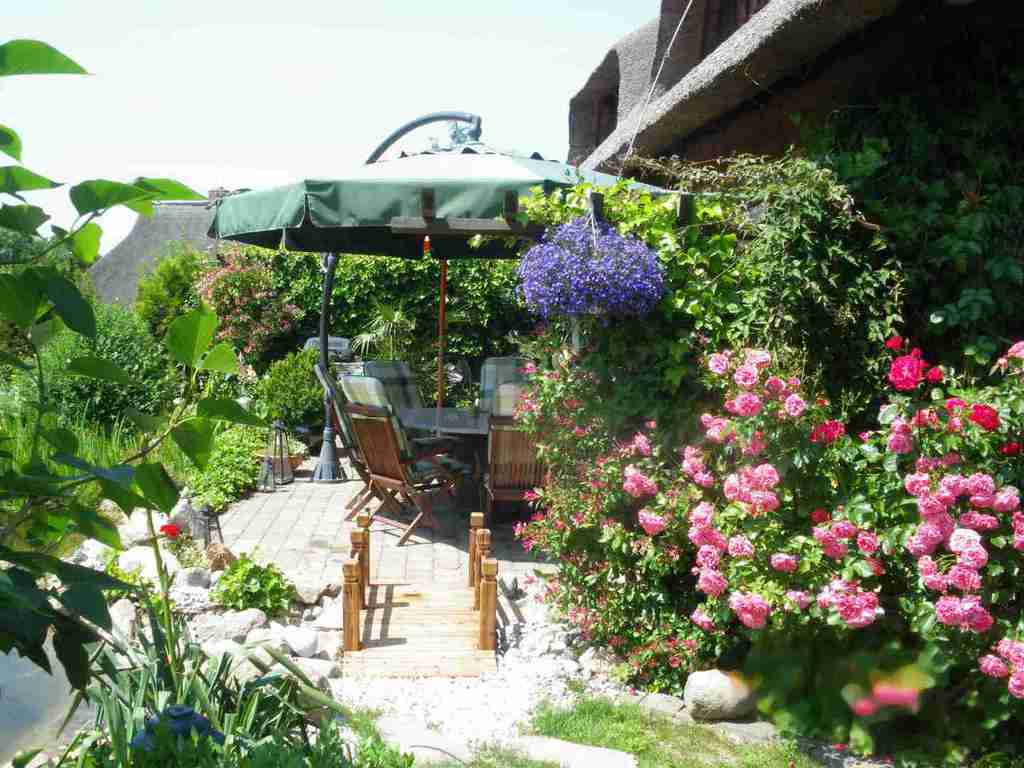 Die Zuwegungen und die Terrasse sind liebevoll angelegt und wirken sehr einladend.