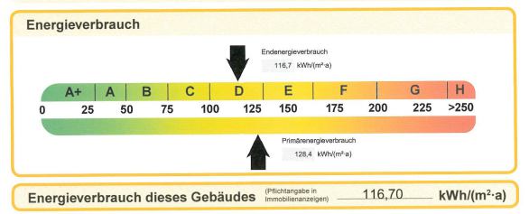 Energieverbrauchsausweis: 116,7 kWh/( m²/a) Heizung: Gas