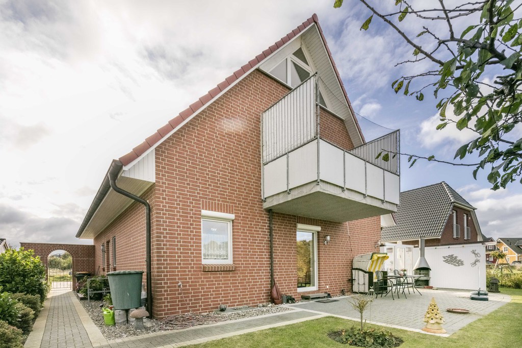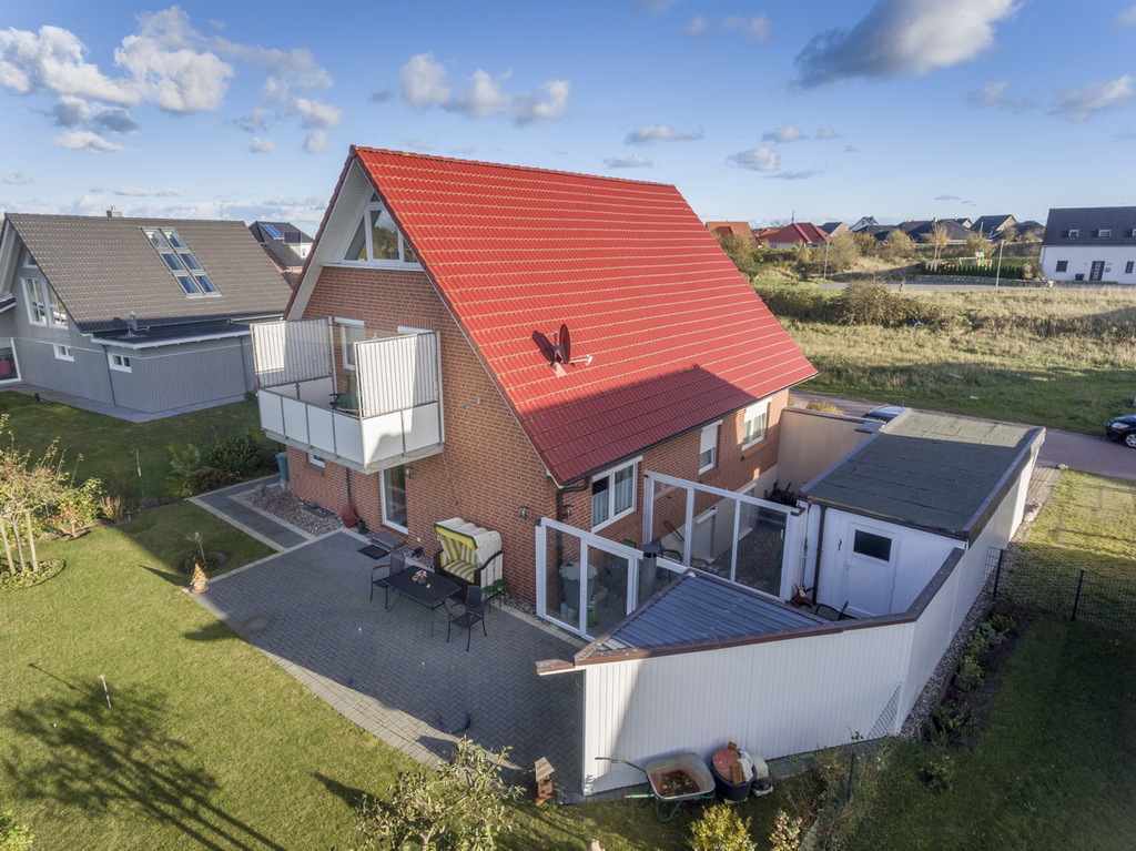 Vom Erdgeschoss, Dachgeschoss und Spitzboden sowie von der Terrasse haben Sie einen Ostseeblick. Durch die erhöhte Lage mit dem Blick über die Dächer dieses Wohngebietes wirkt das pflegeleichte Grundstück großzügig und frei.