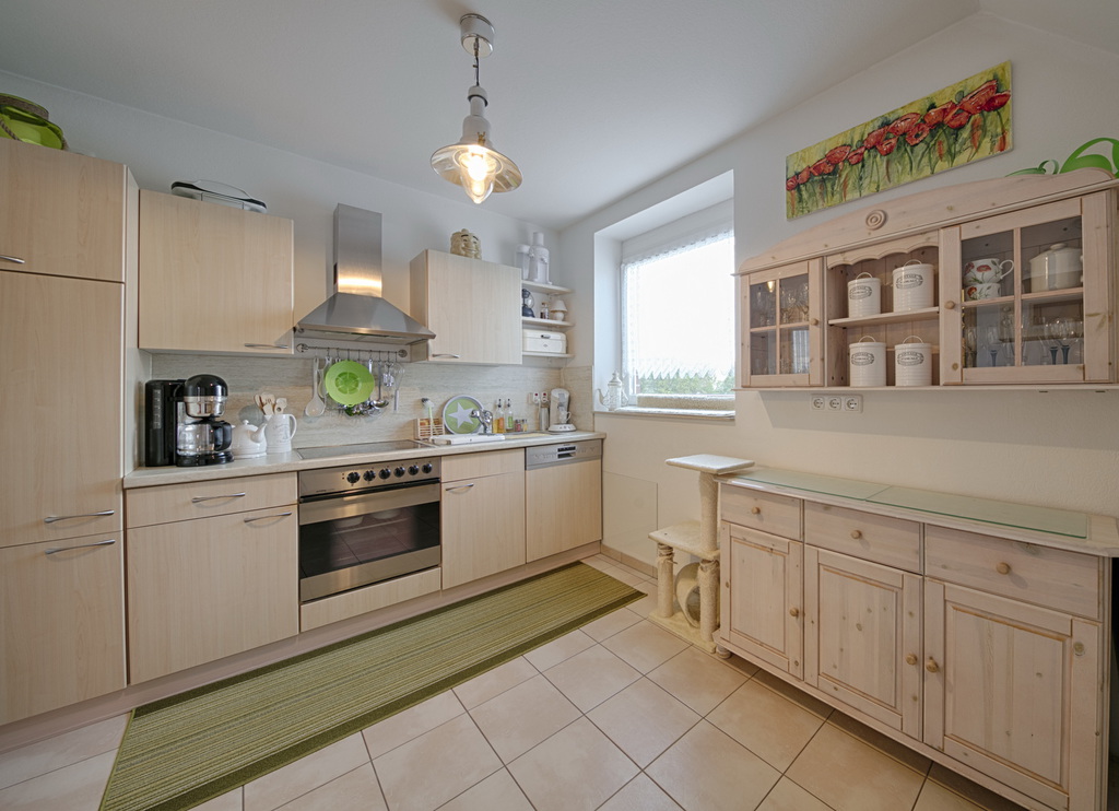 Beide Küchen sind mit Markengeräten der Fa. Neff und Privileg ausgestattet. Die Bäder bieten ebenfalls Komfort mit Fußbodenheizung, teilweise mit Handtuchheizkörpern und 2 von 5 Bädern sind als Vollbad mit Badewanne ausgestattet.