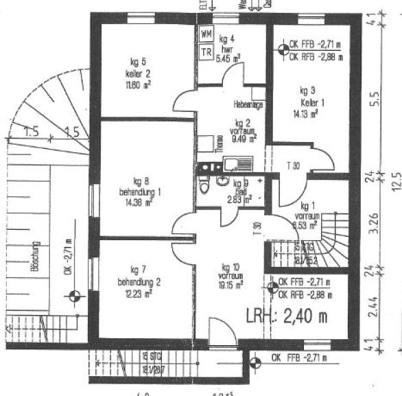 Das Haus bietet Ihnen insgesamt 7 Zimmer, 2 Küchen, 5 Bäder, sowie ein Kellergeschoss mit derzeit 3 Arbeits-/Praxisräumen und 4 Abstellräumen inklusive Heizungsraum.