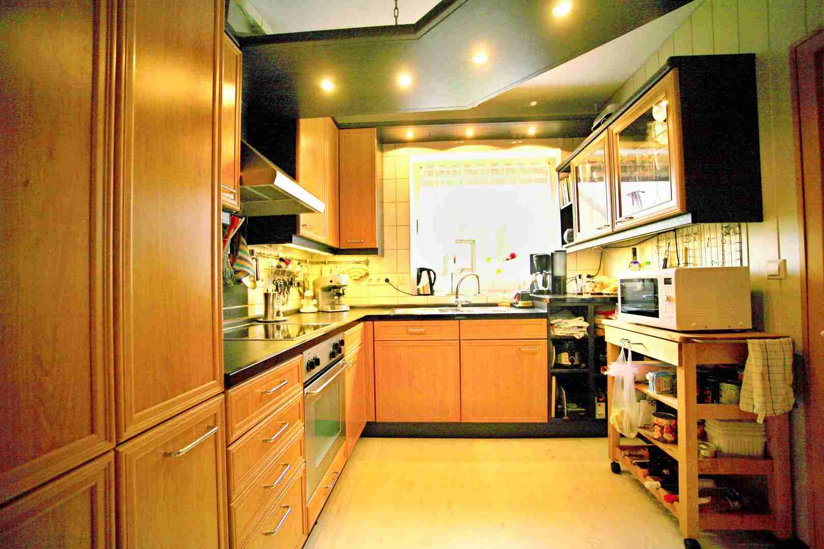 Weiterhin betreten Sie zur linken Hand des Flures die schöne Küche, die Ihnen auch den Zutritt zum Essbereich gewährt und so kurze Wege beim Essen bietet. Die Küche ist mit einer Einbauküche der Marke Alno ausgestattet, hochwertig und modern im sehr guten Zustand.