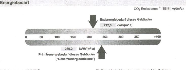 Energiekennzahlen: Endenergiebedarf 212,5 Kwh/(m²a);