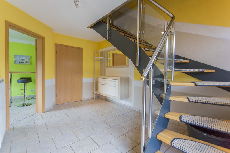 Im Erdgeschoss heisst Sie ein geräumiger Flurbereich einladend Willkommen. Weiterhin befindet sich die Küche, das Gäste_WC, das lichtdurchflutete Wohnzimmer und der HWR im Erdgeschoss des Hauses. Eine offene Treppe mit Holztrittstufen geleitet Sie in das Dachgeschoss des Hauses.