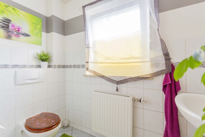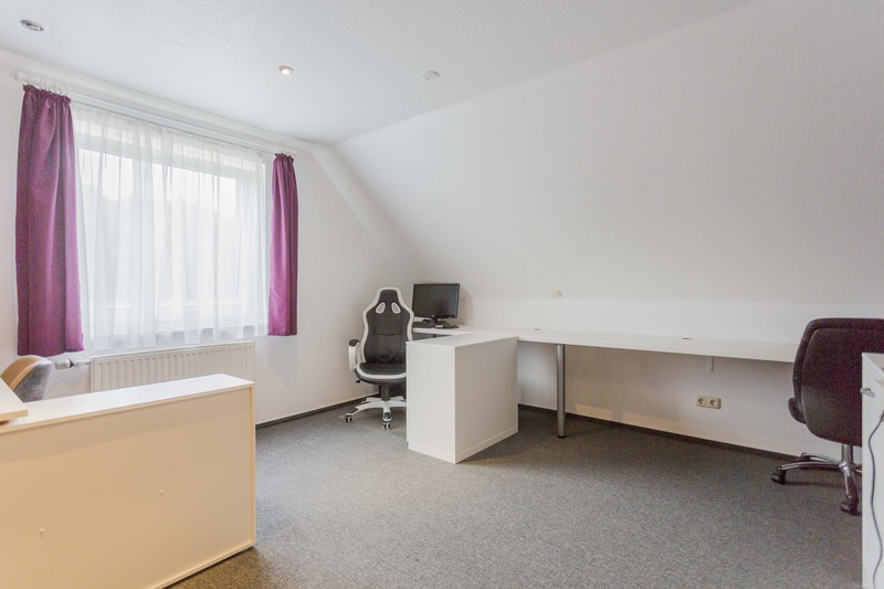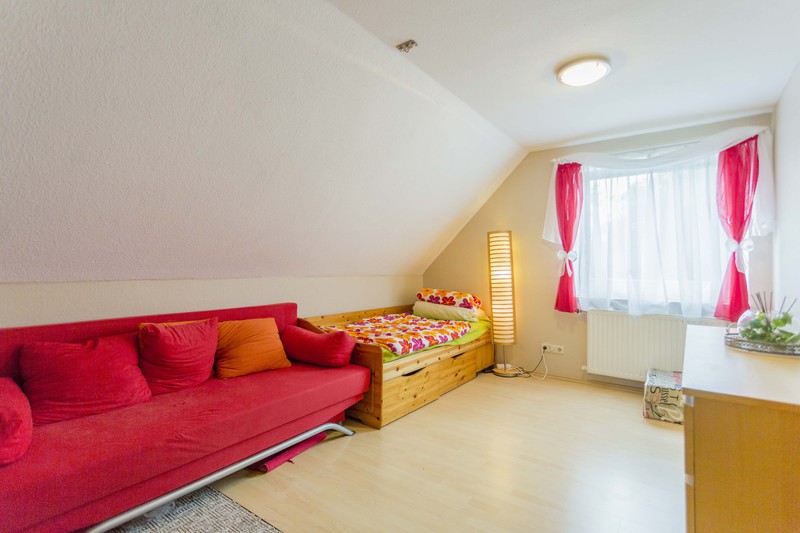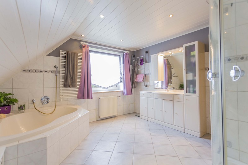 Das Badezimmer glänzt u.a. durch Großzügigkeit, einen Handtuchheizkörper, schöner Dusche, klasse Badewanne u.s.w.. Der Spitzboden ist ausgebaut und dient als Multifunktionszimmer.