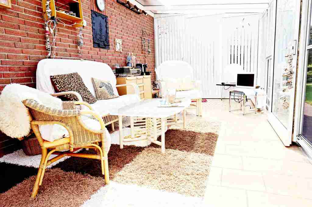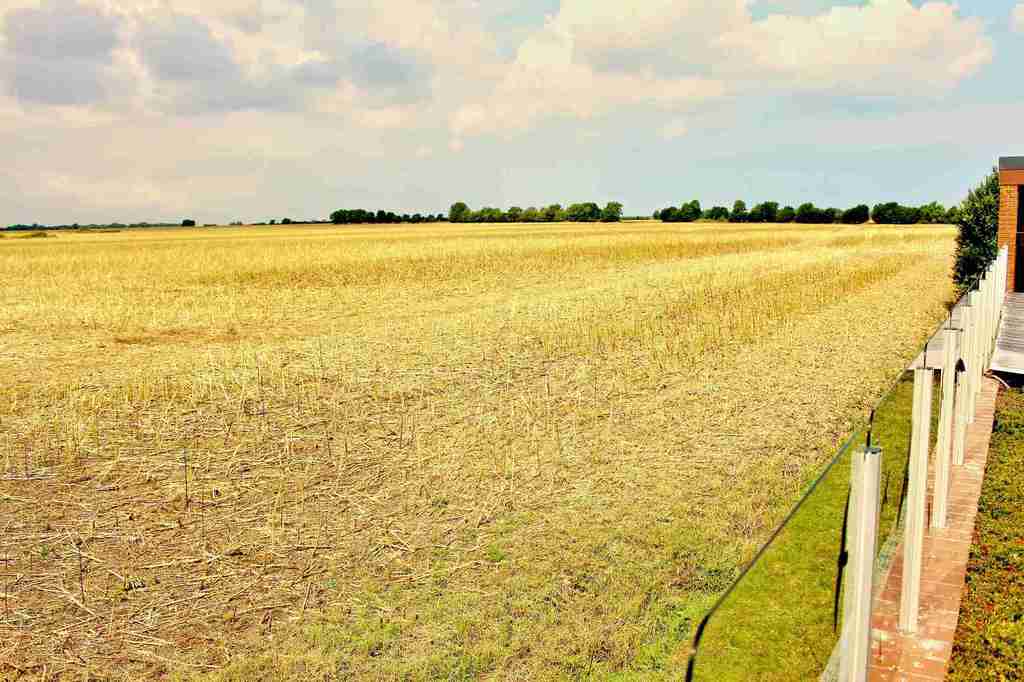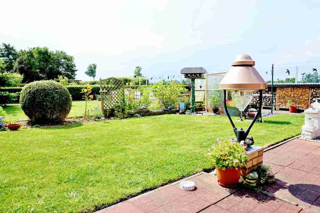 Das Grundstück ist schön angelegt und eingefasst. Zum Genießen von entspannten Stunden im Garten wurde sogar an einen Windschutz gedacht, der den Blick auf die angrenzenden Felder frei gibt.