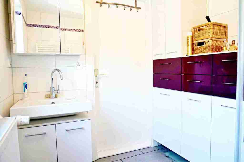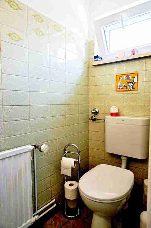 Das Gäste-WC erstrahlt noch im „trendigen“ Retro-Look und hat einen modernen Waschtisch und ein neueres WC erhalten.