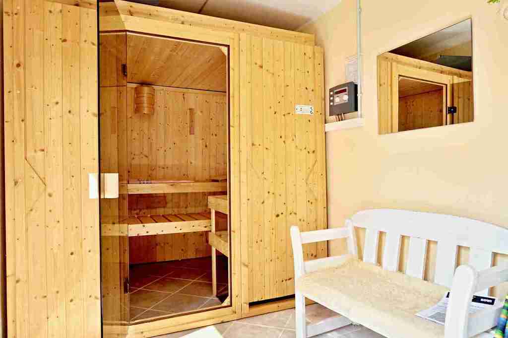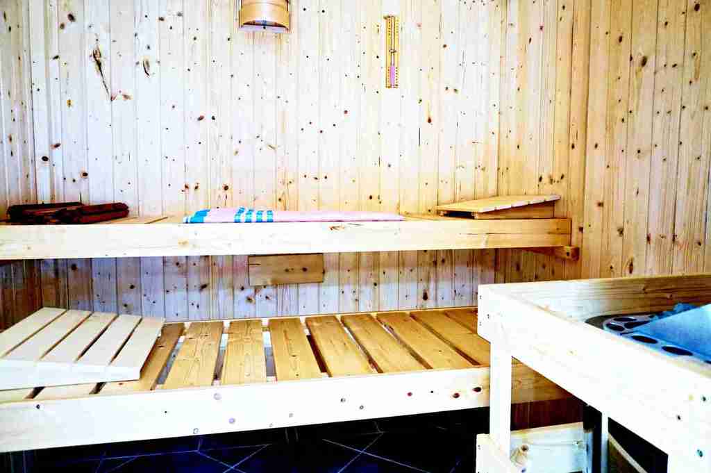 Eine großzügige Garage, eine Werkstatt, ein separater Abstellraum für Gartengeräte und ein schöner Saunaraum runden das Platzangebot harmonisch ab.