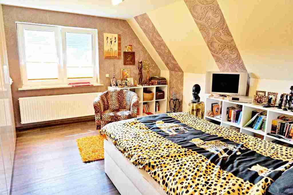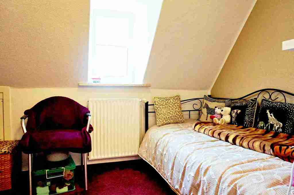 Im Dachgeschoss der Immobilie ist ein Schlafzimmer sowie ein weiterer Raum vorhanden, der sich auch als praktische Ankleide eignen würde.