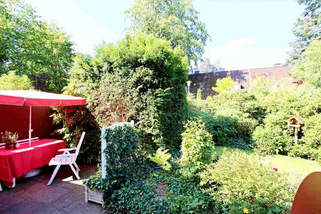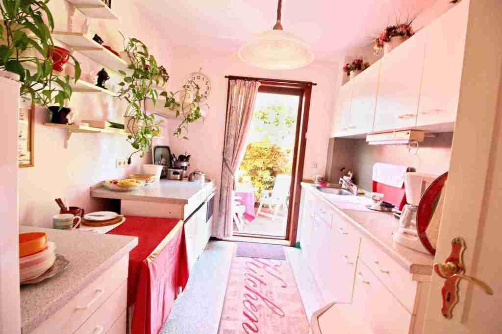 Die Küche verfügt über eine Einbauküche. Hier gelangen Sie auf die Terrasse und den eingewachsenen idyllischen Garten.