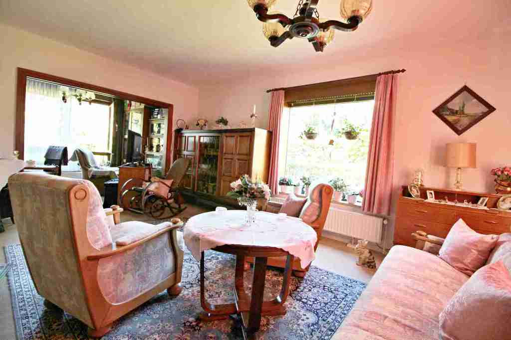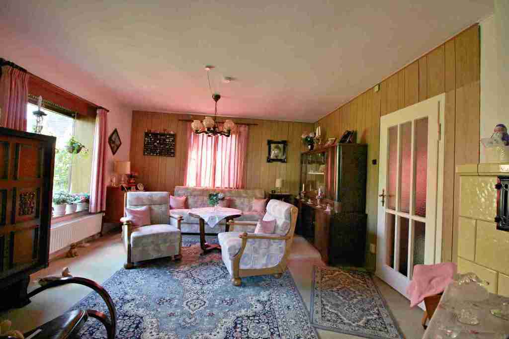 Das geräumige Wohnzimmer beherbergt ein kleines Büro, das auch als Esszimmer genutzt werden kann.