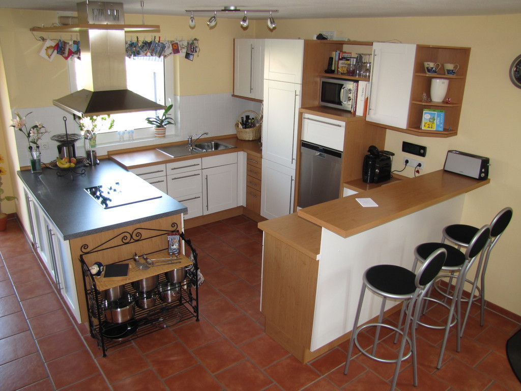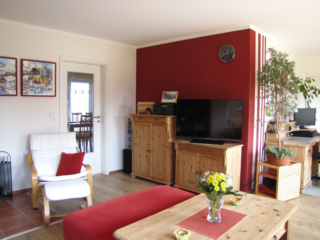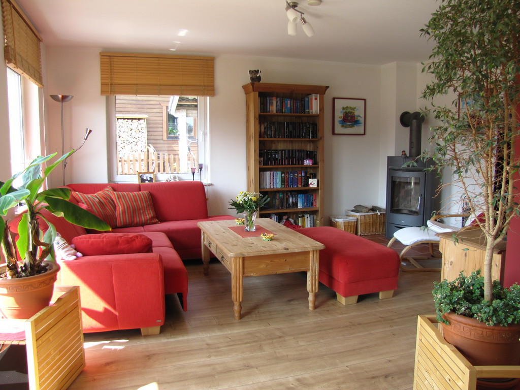 Im Erdgeschoss befindet sich zur rechten Hand die Küche und der Essbereich mit Ostseeblick. Die Küche ist sehr gut ausgestattet. Hier wird schon das Kochen zum Genuß. Der Küchenbereich sowie der Essbereich sind mit geschmackvollen Fliesen versehen. Der Wohnbereich der Immobilie ist sowohl von der Diele als auch vom Essbereich aus zu begehen. Ein klasse Kaminofen läßt Sie in der kalten Jahreszeit romantische Stunden vorm lodernden Feuer verbringen.
