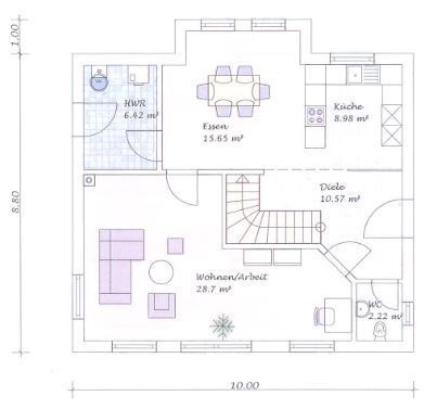 Sie betreten über den gepflegten Eingangsbereich die Diele des Hauses. Zur linken Hand befindet sich das modern gestaltete Gäste- WC. Eine schicke Treppe bildet den Mittelpunkt der Diele und geleitet Sie in das Dachgeschoss des Hauses und somit in eine schöne Galerie mit herrlichem Blick auf die Ostsee.