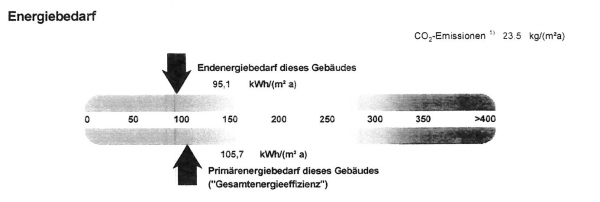 Energiekennzahlen:Endenergiebedarf 95,1 kWh/(m²a);