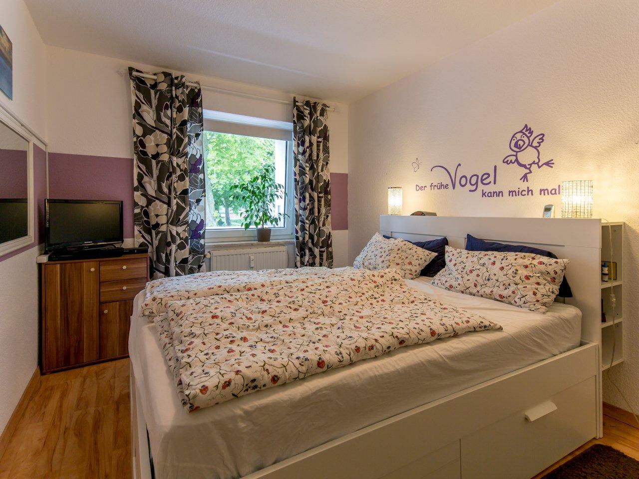 Vom Wohnbereich aus gelangen Sie auf den kleinen Balkon der in Süd-/ Westausrichtung ab mittags einen schönen Sonnenplatz bietet. Ebenfalls vom Wohnbereich aus gelangen Sie in das Schlafzimmer. Der Schlafbereich bietet ausreichend Raum für ein Doppelbett und einen Kleiderschrank. Die Räumlichkeiten erstrahlen hell und freundlich.