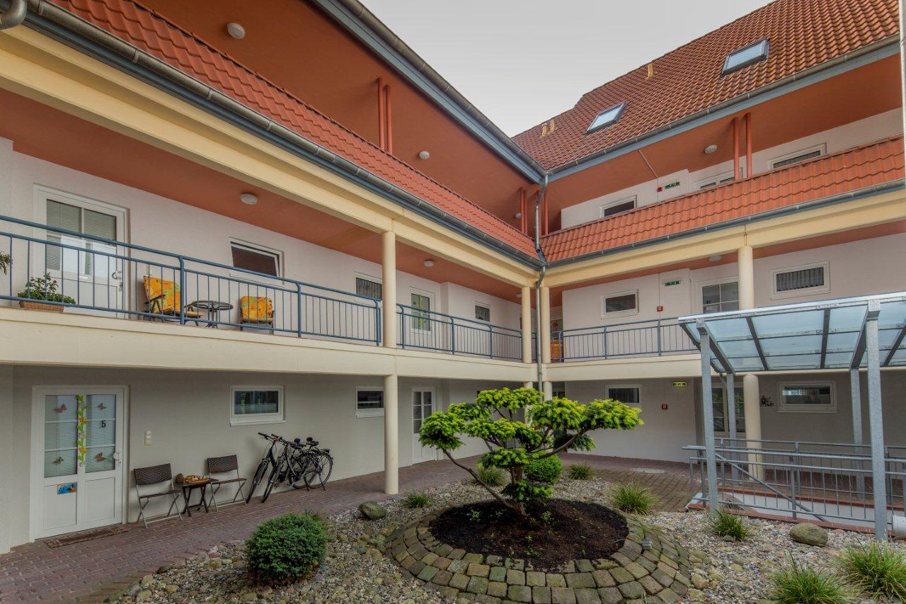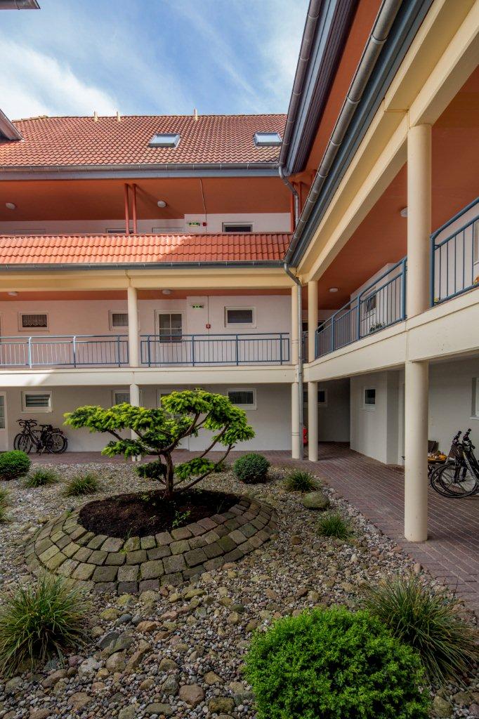 Ein schöner Laubengang mit Blick in den idyllischen Innenhof führt Sie vom Treppenhaus zur Wohnung.