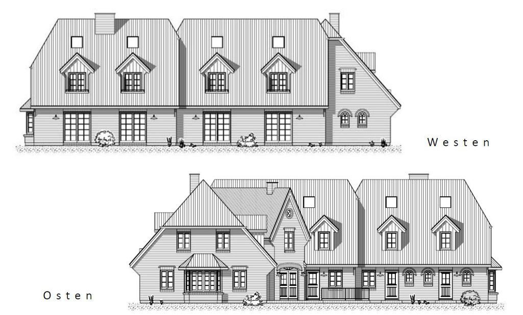 In einem typischen Friesenhaus mit insgesamt 9 Wohneinheiten entstehen drei Obergeschoss- / sowie drei Erdgeschosswohnungen, mit 2 - 3 Zimmern über jeweils zwei Etagen. Die Fußböden im Erdgeschoss sind mit Sandsteinfliesen und im Obergeschoss-/Spitzboden mit gekälkten Eichenlandhausdielen versehen. Massive Tischlereinbauten verschaffen nützlichen Stauraum. Eine Fußbodenerwärmung in den Bädern gehört zum Lieferumfang.